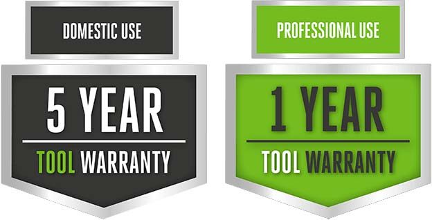 We’re so confident in the performance of our tools that we offer professional users a 3-year warranty on the Professional-X range, and a 2-year warranty on the Professional range when tools are registered within 30 days of purchase. For domestic users we offer a 5-year warranty on all tools and a 3-year warranty on batteries when registered within 30 days of purchase.